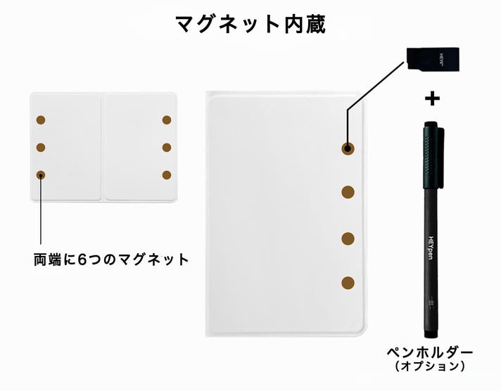 オプションのペンホルダーを使えば、専用ペンなどもマグネットで一緒に固定可能。