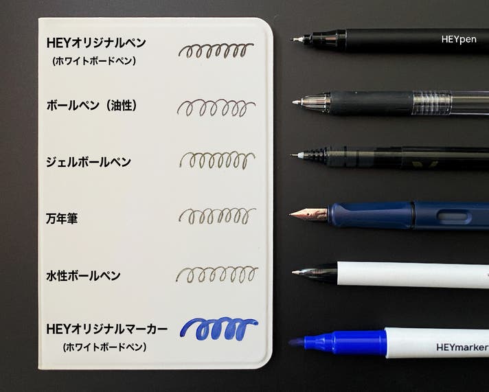 HEYfoldは市販のドライイレースペン(HEYpen・HEYmarkerを含む)との相性が特によく、速乾性が高く消しやすいため、ストレスなく使えます。