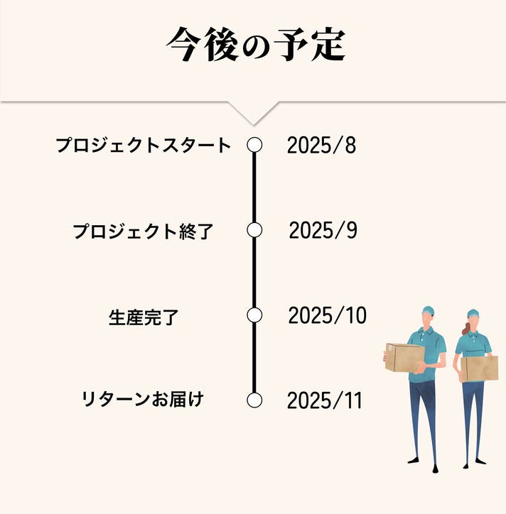 このプロジェクトはAll in型です。目標金額の達成に関わらず、プロジェクト終了日の2025年09月29日までに支払いを完了した時点で購入が成立します。