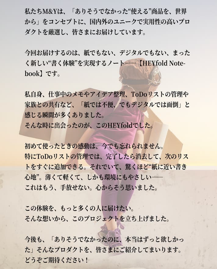 M&Y TRDEは日本におけるHEYfold Notebookの独占権を有する正規代理店です。