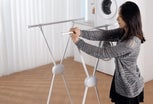 - 物干し棒は360°回転可能。洗濯物の量に応じて幅の長さを自由に調整。