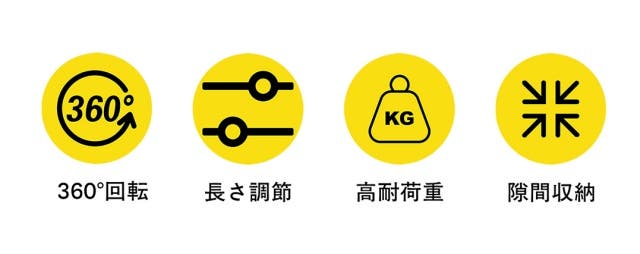 360°回転&長さ調節で自在に対応!!