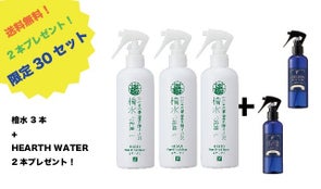 シンプルな「檜水」が3本、さらにアロマ入りの「HEARTH WATER」を1本プレゼント!