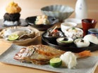 静かな空間にかすかに響く「パチパチ…」という炭の焼ける音。心地よい音色に耳を傾けながら酒を肴に季節の味を堪能する、そんな至福のひとときを愉しめるのが【原始焼 火鉢】。季節の味を堪能できる料理や日本酒を合わせて、魚のさらなる旨みを堪能できます。
