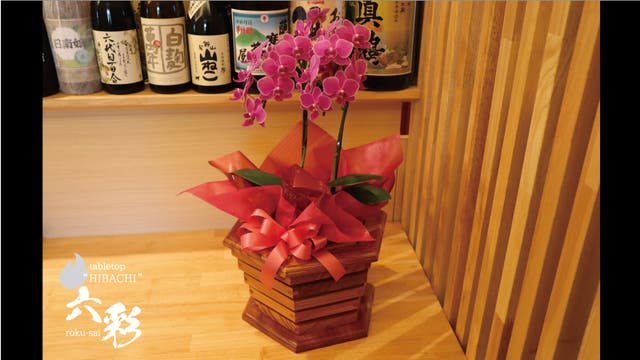 「女島(めしま)」様では、卓上火鉢 “ 六火 Rocca ”、“ 枡火 masubi ”を通常の火鉢としての使い方だけに留まらず、お花を活けたり店舗のインテリアとしても御利用いただいており、お客様からも御好評をいただいているそうです。