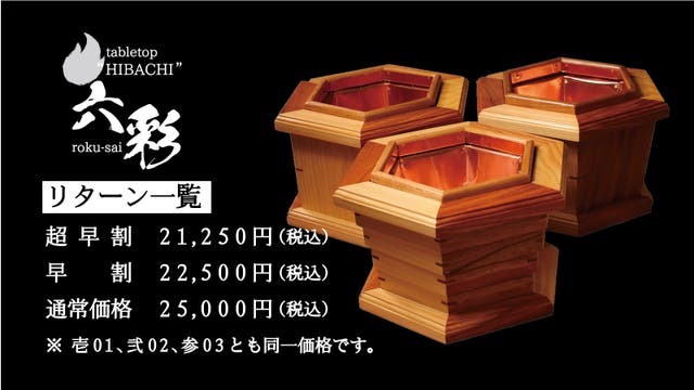 「Makuake(マクアケ)」は、実行者の想いを応援購入によって実現するアタラシイものやサービスのプラットフォームです。このページは、 プロダクトカテゴリの 「火鉢職人が6つの素材で創り上げた卓上火鉢! “六彩 rokusai”を先行販売!」プロジェクト詳細ページです。