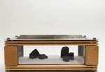HIBACHIは、燃焼室・木製ベース(木台)・そして両者の間に設けられた空気層によって構成されており、優れた断熱性能を実現しています。