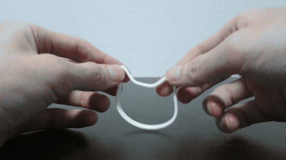 - 高伸長シリコーンを採用。約4倍の長さまで伸縮し、使用後は元の形に戻る。