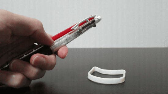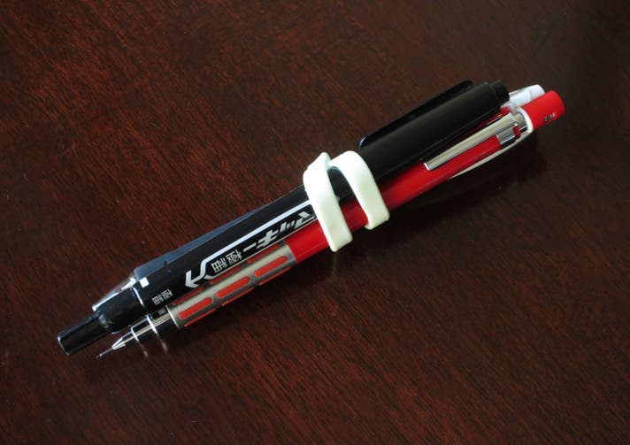 ボールペンやシャーペンなどを束ねることで、ペンケース無しで持ち運びができるようになります。バッグの中に入れても散らかりにくく、光るので見つけやすくなります。