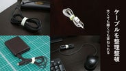 パソコン周辺やデスク上のケーブルを束ねることで、簡単に整理整頓ができます。太いものから細いものまで取り付けることができ、細いケーブルは2-3周巻くことでしっかり束ねられます。