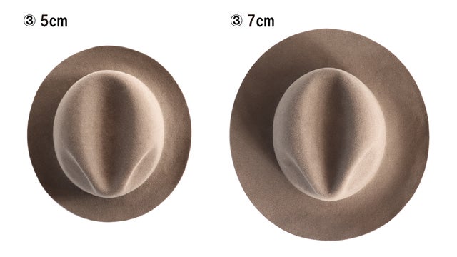 身長が高い方はツバの広いタイプ、小柄の方はツバの短いコンパクトな帽子がおすすめ。
