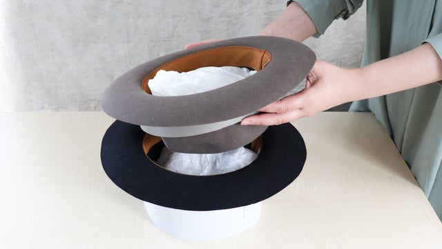 ・型崩れを防ぐためクラウン(頭部分)を下向きにして、お買い上げ時についてくる紙製の筒に載せて保管することをおすすめします。