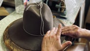 特に蒸気を当てながら木型に合わせて帽子の形に成型する『型入れ』は、職人の力加減が重要。