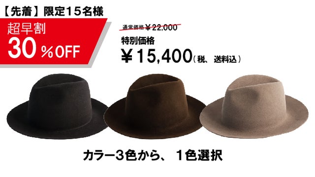 一般販売予定価格 ¥22,000の30%OFF → ¥15,400(税、送料込)