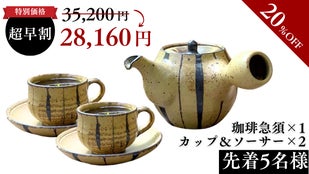 <5個限定>【makuake限定10%オフ】竜覚窯珈琲急須+カップ・ソーサー×2