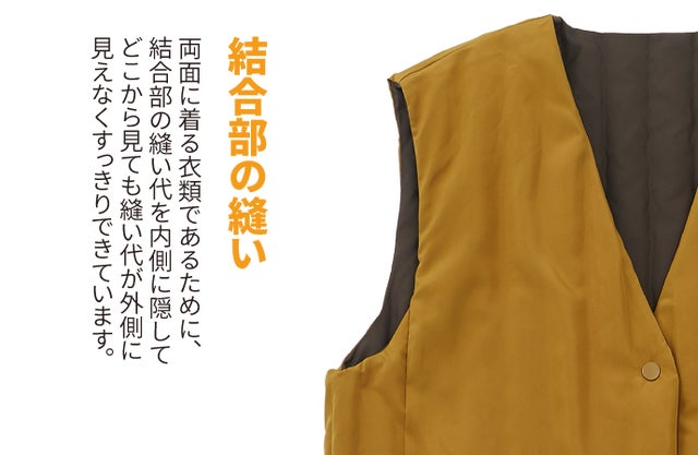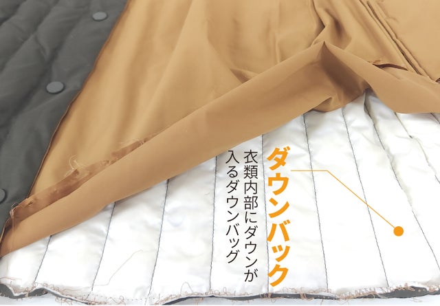 縫い目の間にダウンが挟まったり縫い目を通してダウンが服の外に抜けにくいので、すっきり長く着られます。