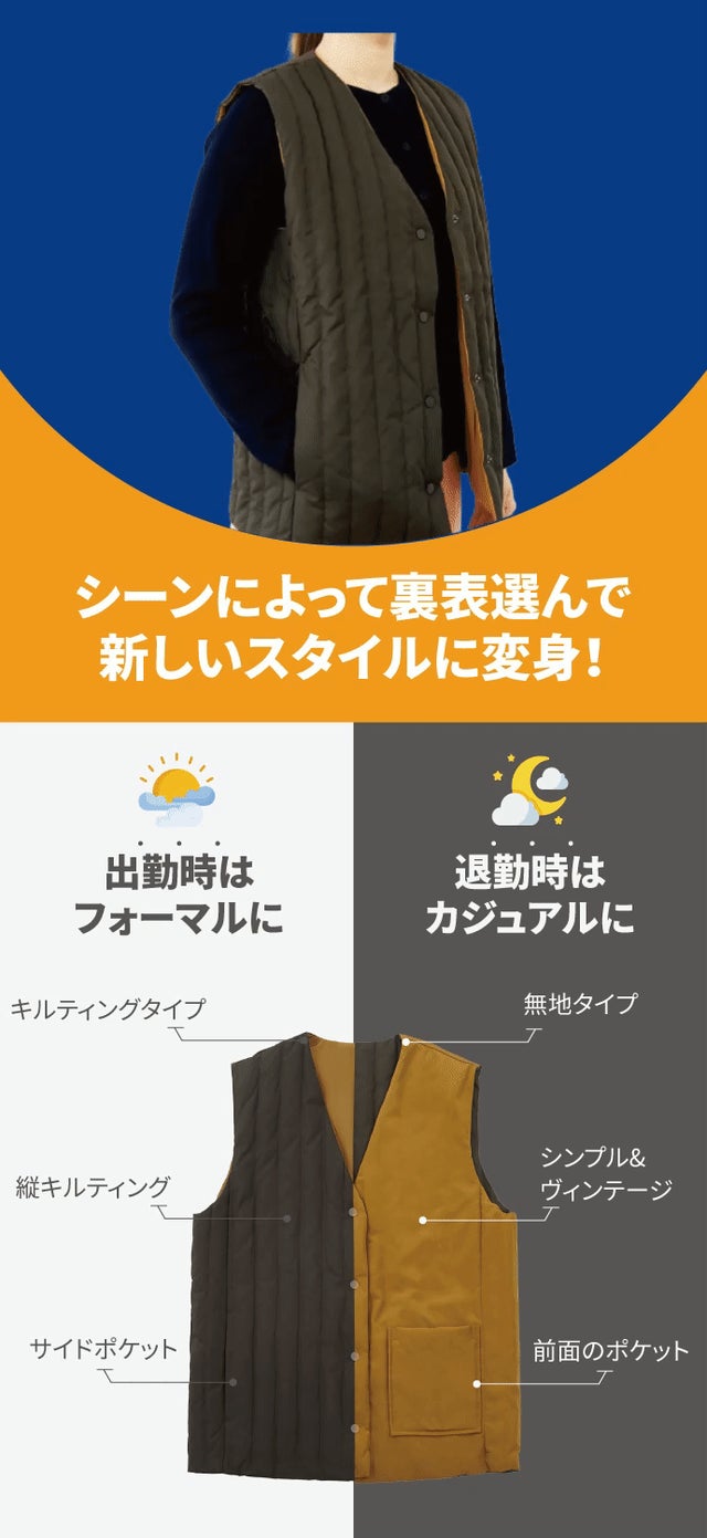 3秒で気分転換!両面着れるリバーシブルベスト!