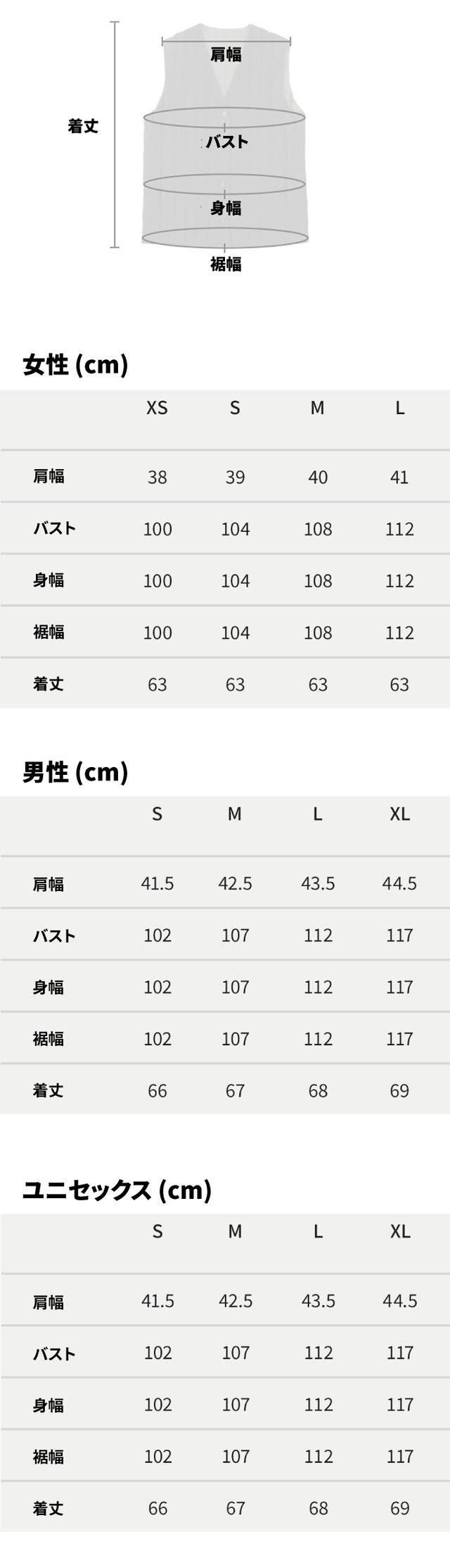 *ユニセックスと男性サイズは同じです。