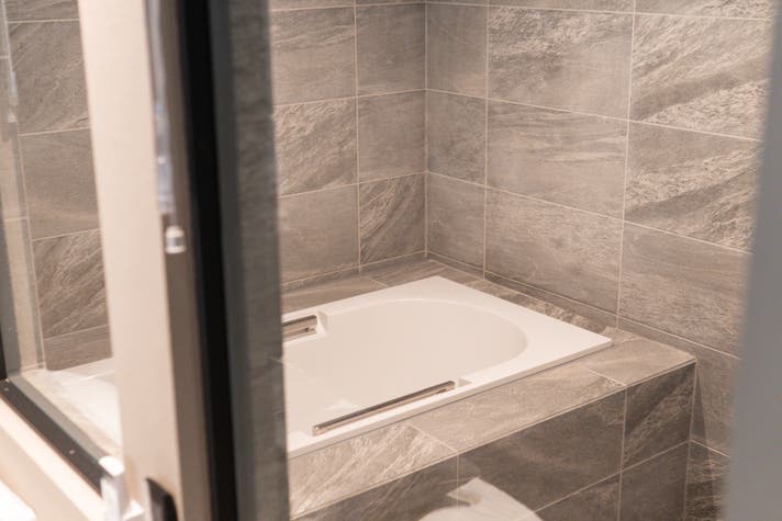 湯船も大きく設定しており、体格の大きな男性でも足を伸ばしてくつろげます。