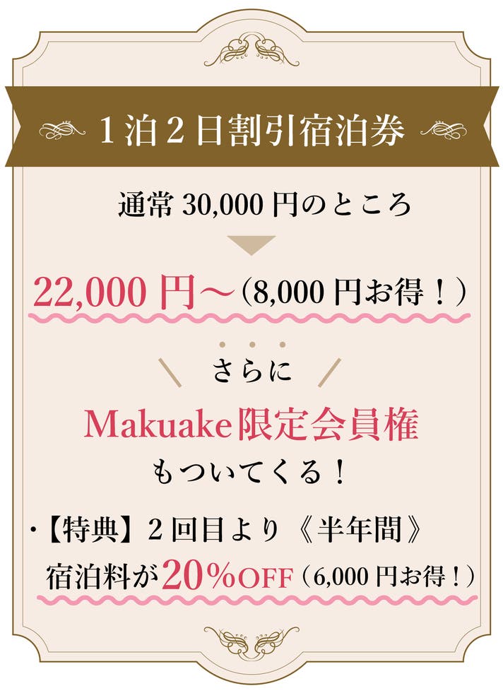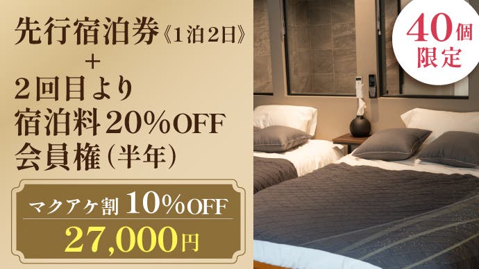 【マクアケ割】先行宿泊券《1泊2日》+2回目より宿泊料20%OFF会員権(半年)