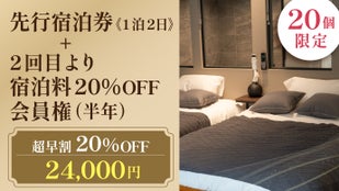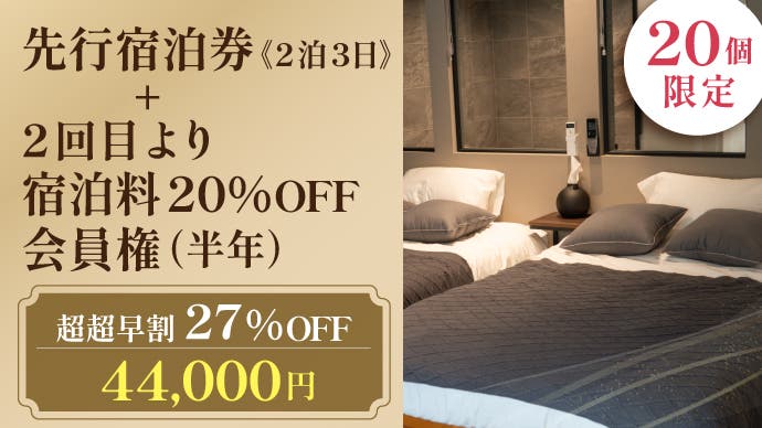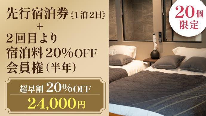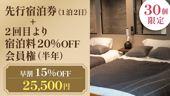 【超早割】先行宿泊券《1泊2日》+2回目より宿泊料20%OFF会員権(半年)