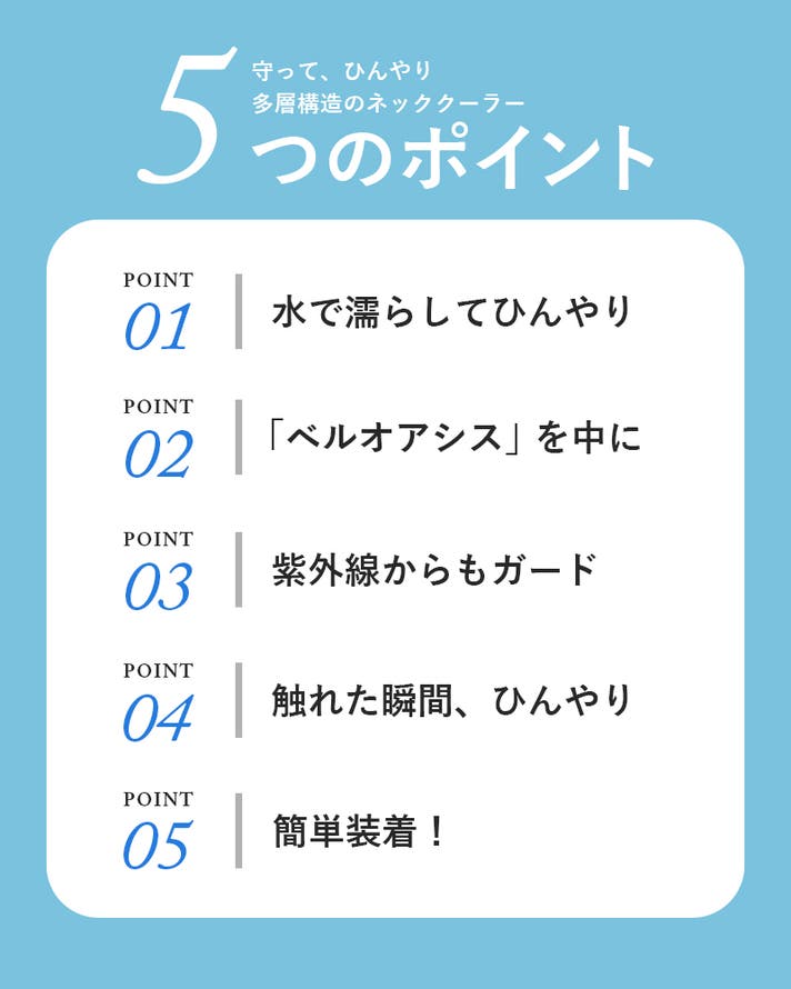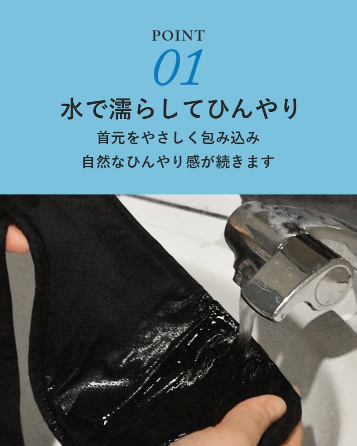 - 首元から腕まで日差しをやさしく遮り、ひんやりした触感で夏の外出を快適にサポート