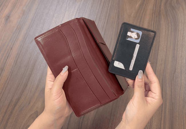 すごくありがたいです。カードを入れてもかさばらないし、革風の質感も上品で、大人が持っても違和感ありません。(男性 50代)