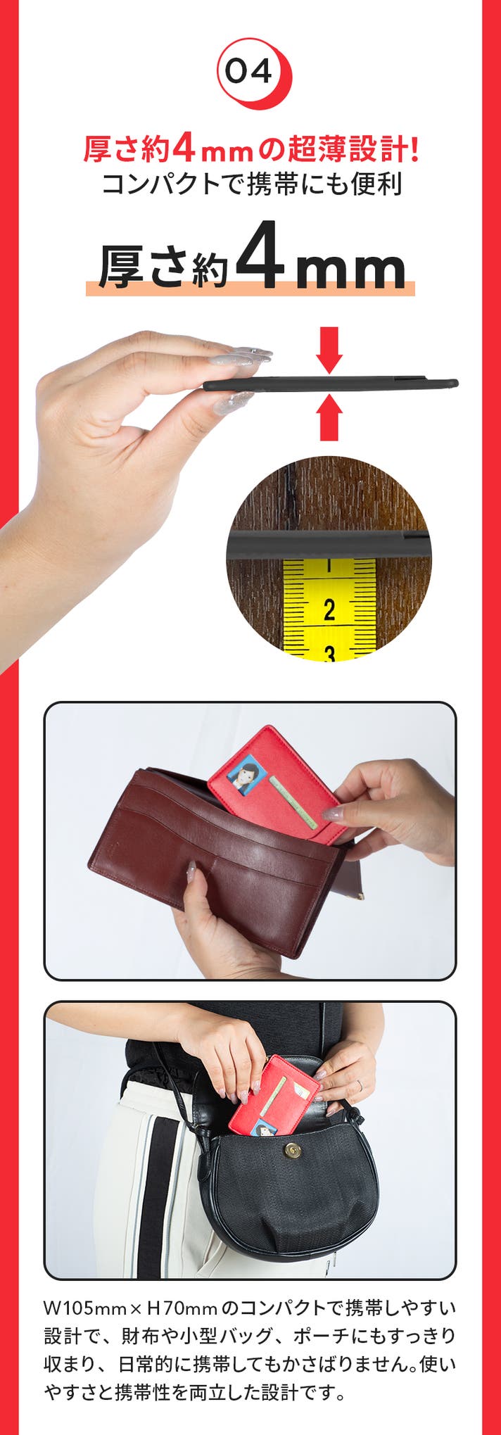 04)厚さ約4mmの超薄設計!コンパクトで携帯にも便利