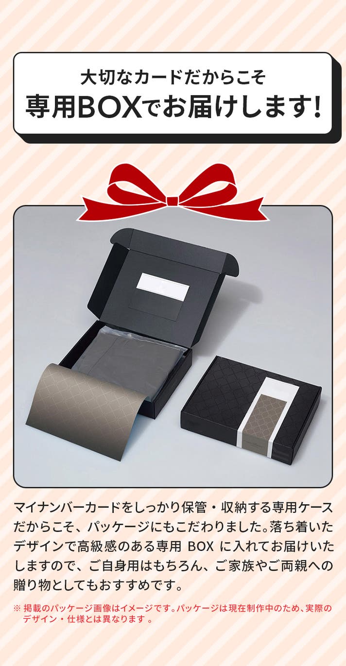 パッケージにもこだわりました。 落ち着いた デザインで高級感のある専用 BOX に入れてお届けいた しますので、ご自身用はもちろん、ご家族やご両親への 贈り物としてもおすすめです。