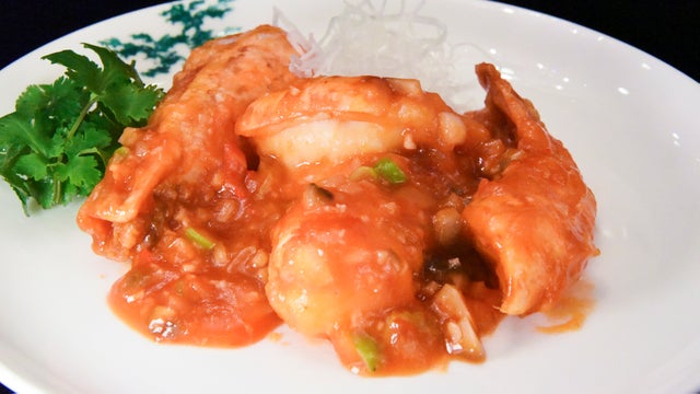 ・天然有頭大海老「四川風チリソース甘辛煮(殻付き)」