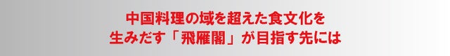 最近、飛雁閣スタッフを喜ばせるニュースが飛び込んできました。香港のバイヤーが来店され「香港の概念をも超える料理とサービスを提供する店」との評価をされて、本社に「ビジネスパートナーとして最有力相手先」との報告をした、というのです。