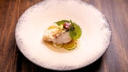 ソースには香ばしく炒った生米に、白甘鯛の頭と骨からとった出汁を合わせ、梅酢でやわらかな酸味を添えました。さらに宮崎県特産の柑橘「へべす」の香りを忍ばせることで、奥行きのある爽やかな味わいに仕上げています。