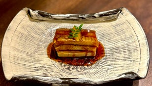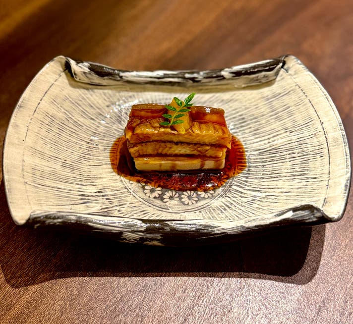 日本料理を代表する煮穴子と、フランス料理を象徴するフォアグラのテリーヌ。東麻布いとでは、この二つを組み合わせ、口どけの妙を追求したシグネチャーディッシュとしてご用意しております。