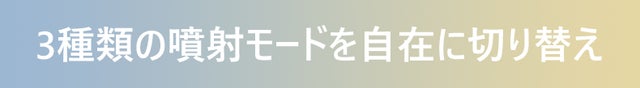 ノズルの先端を回すだけで3種類の噴射モード(拡散・シャワー・ジェット)を自在に切り替えできるので、ニーズに合わせて様々な場面でご利用いただけます。たいr