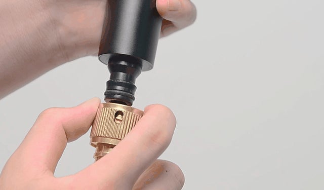 高圧洗浄ノズル「Supwell」は複雑な組み立てや接続は一切不要で、蛇口に取り付けてトリガーボタンを押すだけで高圧洗浄が可能です。また一般的なレバー式の洗浄機と異なり、トリガーボタンを一度軽く押すだけでずっと放水。止水の時はもう一度トリガーボタンを押すだけでOK !