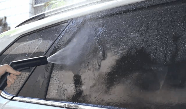 その水圧はなんと噴射距離が長い、電気式の高圧洗浄機にも負けません。