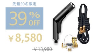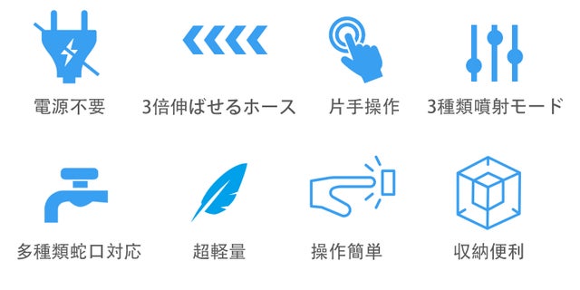 また3種類の噴射モードで、洗車、お掃除、植物の水やりに至るまで幅広く対応。しかもわずか187グラムの軽量設計で長時間の作業も苦になりません。