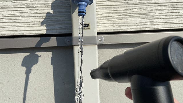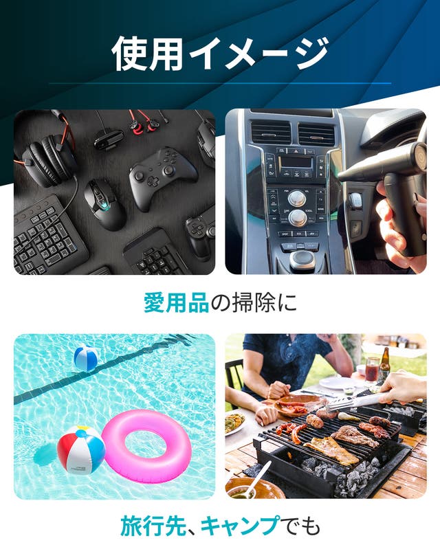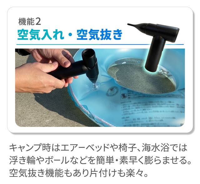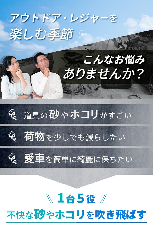 ▲レジャー用品についた砂ぼこりなども吹き飛ばす