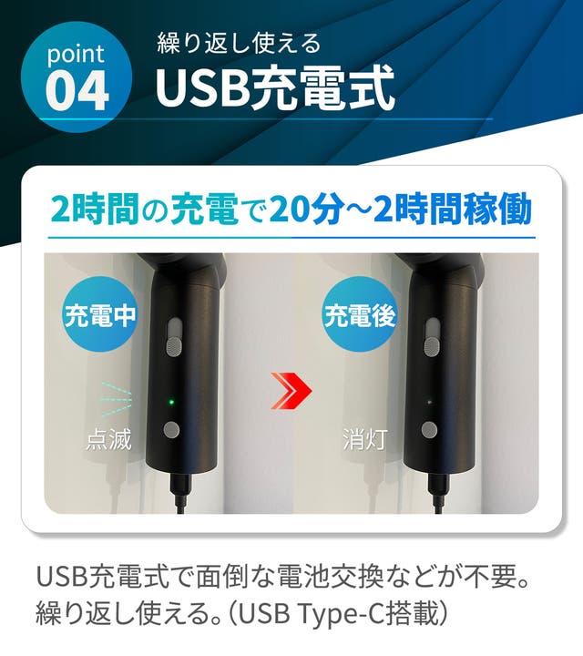 最大110000RPMのパワフル無段変速機能で、微細なゴミから大きなゴミまで、あらゆる掃除に対応!コンパクトで軽量、スマートフォンサイズでどこへでも持ち運び可能。