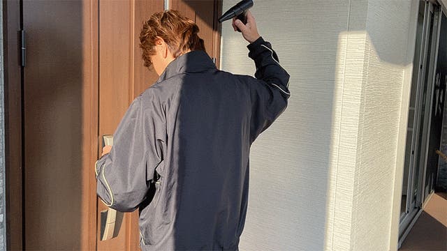 ▲入室前に花粉やホコリを払ってクリーンに