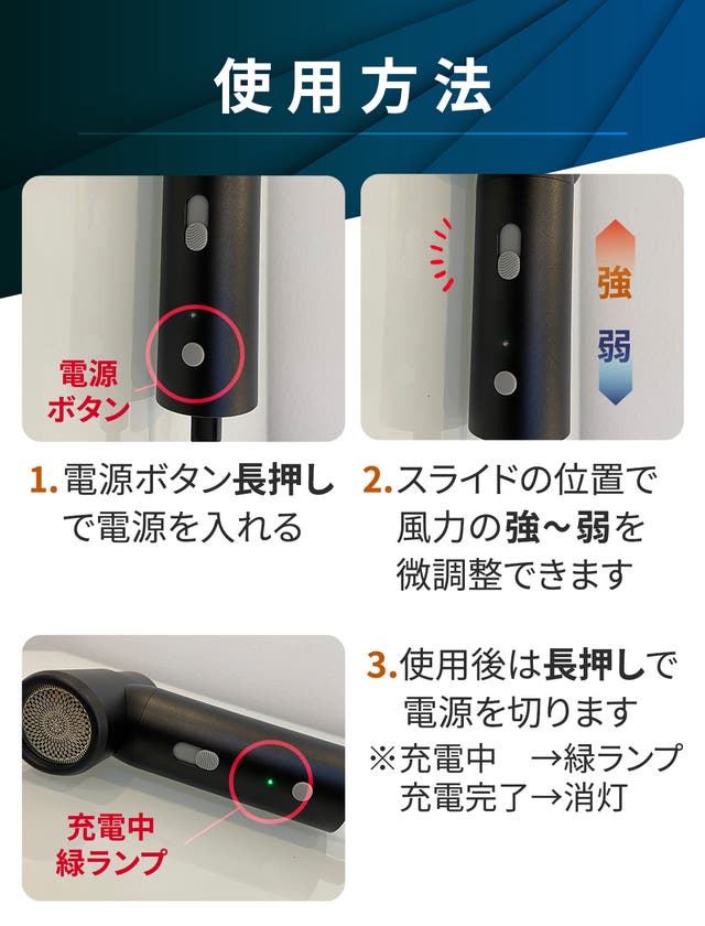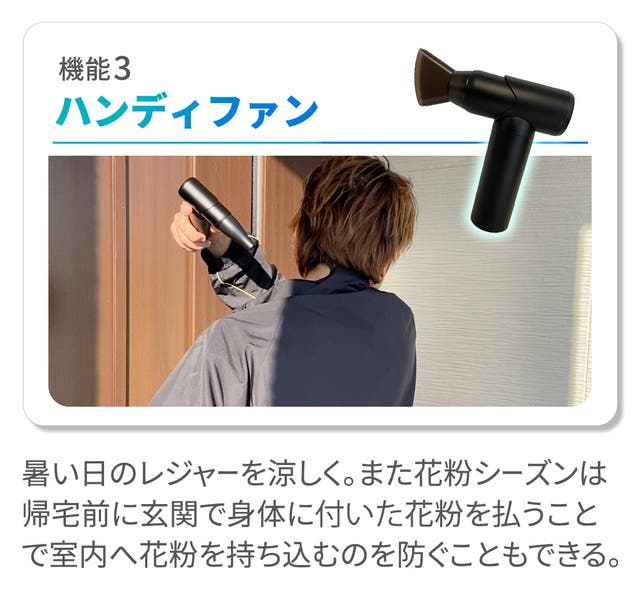 ▲スライドバーの上下で風力を微調整し、用途に合わせて使える