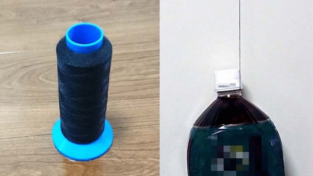 たった一本で2Lペットボトルを吊り下げられる特殊糸、ケブラー採用。
