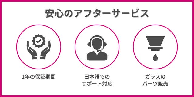 抽出に必要なものは全て付属しておりますので、コーヒー粉と水をご用意頂ければ、すぐに美味しいコーヒをお楽しみいただけます。