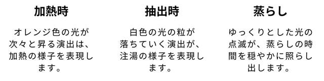 私たちは、"視覚"と"味覚"の関係にも注目し、コーヒーの抽出の過程の全てを視覚的に楽しんでいただけるデザインにこだわりました。
