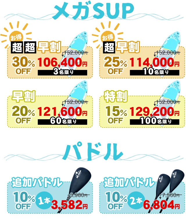 ※沖縄または日本におけるすべての離島にお住まいの方で、パドルのみ購入のお客様については追加送料は必要ありません。