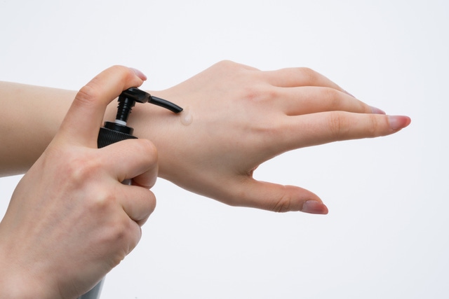 適量(ディスペンサーを1~2回押した量)をコットン又は手に取り、パッティングするようにお顔の中心から外側に向かって大きな円を描くようにゆっくりなじませます。