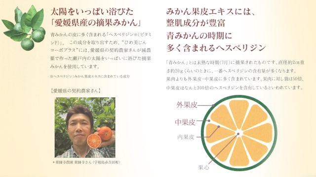 - 愛媛県のみかんを摘果し、整肌成分を抽出しました!