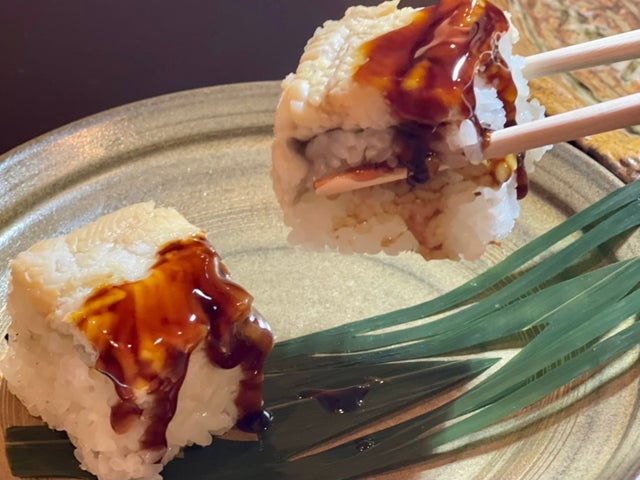 今回のプロジェクトの ふわふわ蒸し穴子の押し寿司 をお土産としてお持ち帰りいただけます。