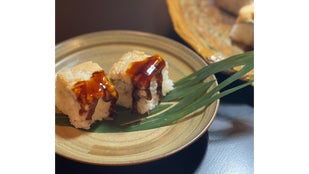 - 焼きとは違う、繊細な甘み!とろり、とタレをかけた蒸し穴子の押し寿司は絶品。