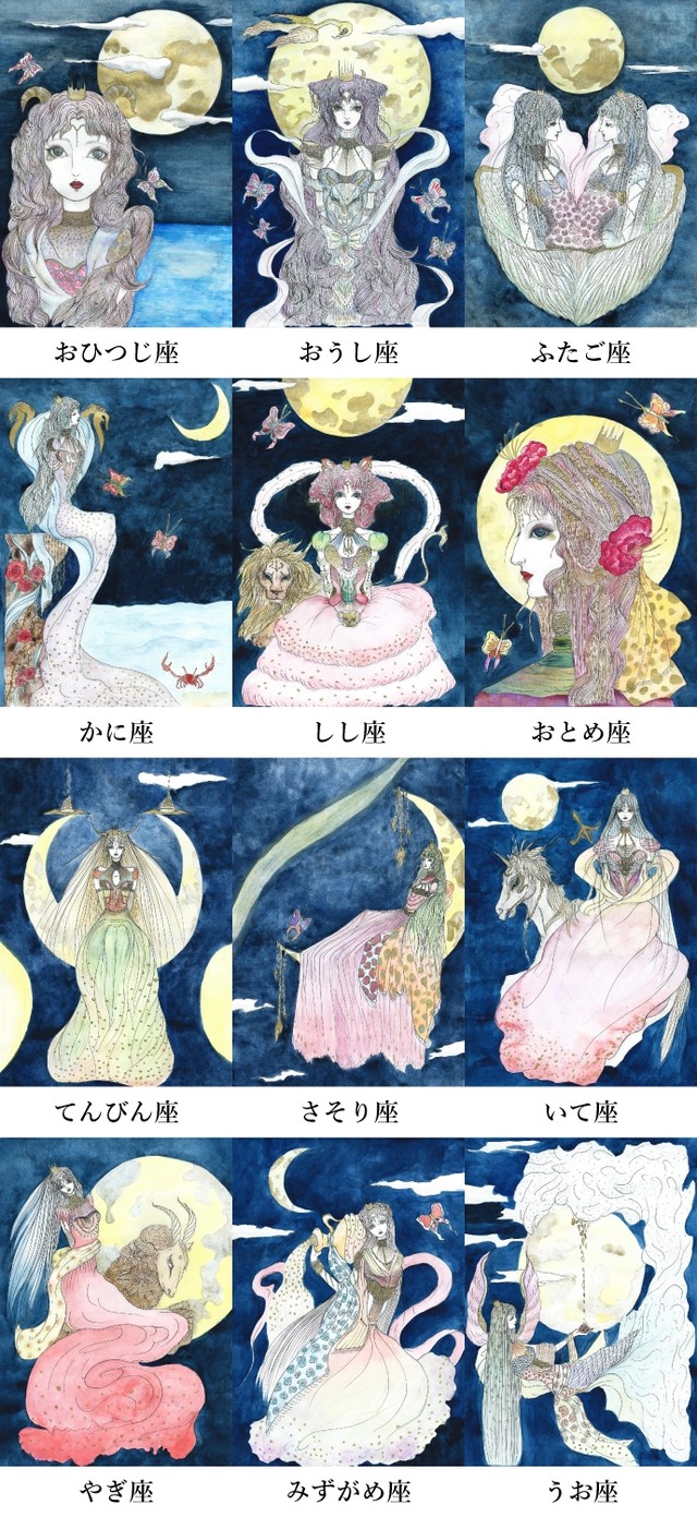 星座をテーマに制作したイラストのポストカード全12枚を、プレゼントさせていただきます。